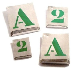 Fabricadas en aluminio de 2, 3 y 4 décimas. Útiles para pintar a pincel, spray o rodillo. Los abecedarios son juegos de 26 letras y las numeraciones de 10 numeros